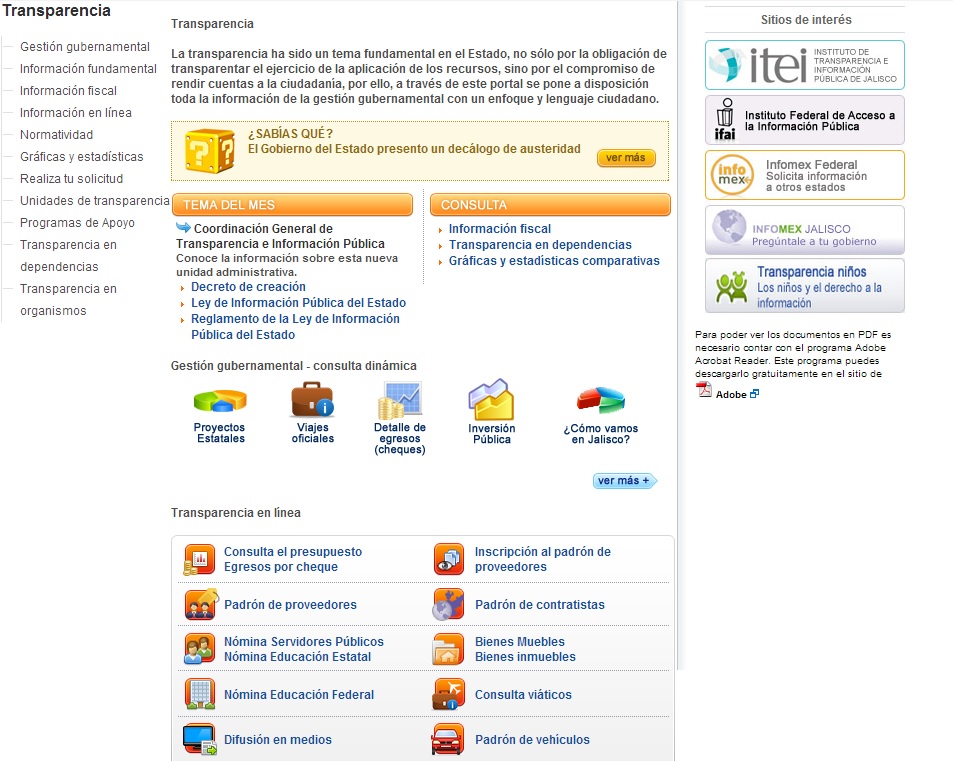 | Portal de Transparencia del Gobierno de Jalisco. Información Fundamental: www1.jalisco.gob.mx/wps/portal/pj/transparencia/ |
