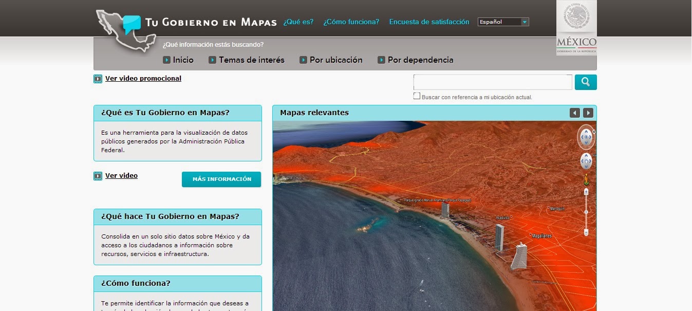 En sentido estricto, la novedad sólo estriba en sistematizar la información con base en temas de interés definidos mediante la consulta (por ahora limitada a quien participe vía Internet). En la Administración de Felipe Calderón se ofreció una herramienta “para la visualización de datos públicos generados por la Administración Pública Federal”, con la intención de que éstos fuesen datos consolidados, y con la particularidad de georeferenciación con el apoyo de Google Maps (mapas.gob.mx).