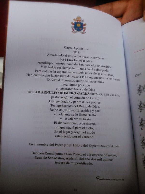 | Carta Apostólica de Beatificación de Mons. Romero |